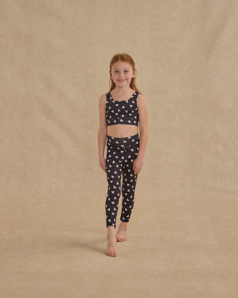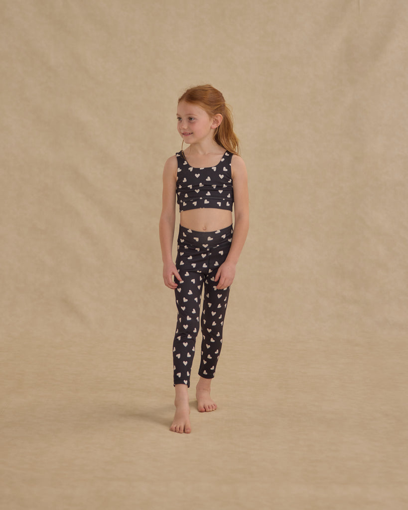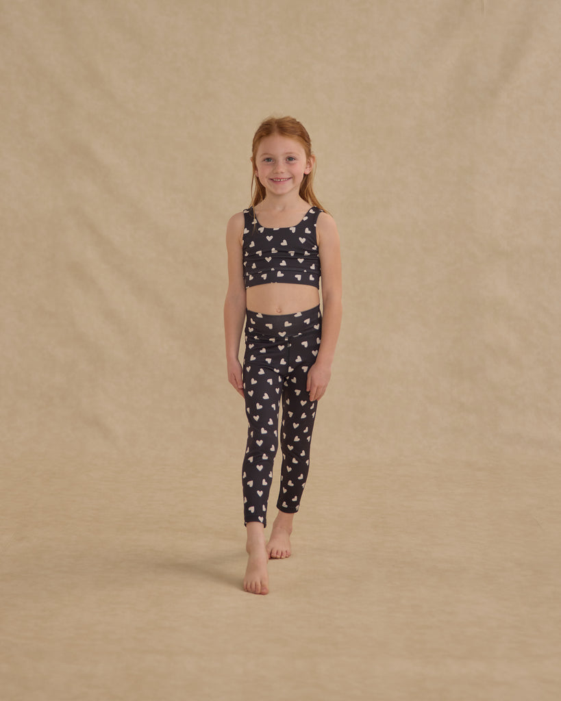 The Hearts Swift Sports Bra by Rylee + Cru features a timeless scoop neckline and classic fit, designed for easy, everyday wear. Made from a soft, stretchy fabric blend, it offers light support and all day comfort that moves with your child. The playful all over heart print adds a fun touch, while the durable construction ensures it keeps its shape and softness wash after wash. Perfect for layering or wearing on its own, this sports bra is a versatile essential for active days and beyond.