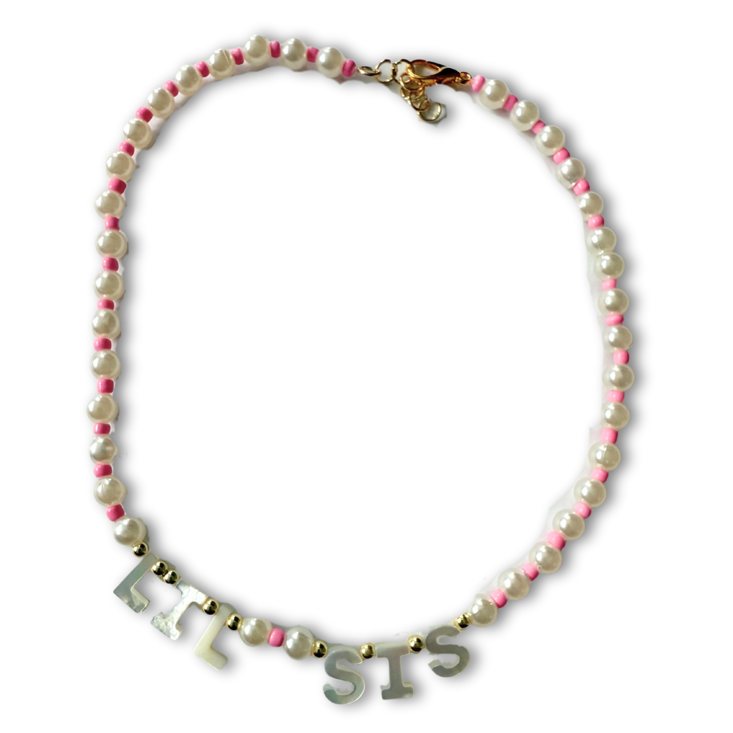 Pearl and Pink Beaded "Sis" Necklace