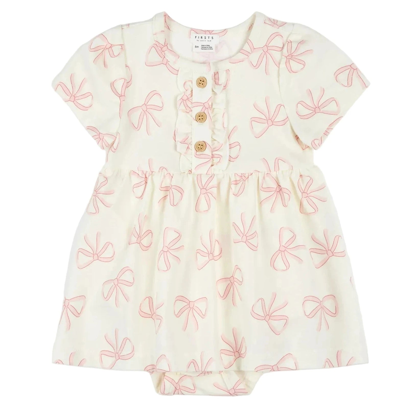 Sweet, soft, and made for everyday moments, the Bows Bodysuit Dress by Petit Lem blends comfort with irresistible charm. Made from a breathable mix of organically grown cotton and modal with a touch of stretch, this one piece style features a flowy skirt made for twirling and delicate frill detailing along the button placket for an extra cute finish. Designed with snap buttons for easy changes, it’s perfect for playtime, special outings, and everything in between, layer it with tights and a cardigan on cooler days or let her shine solo during warm, picture perfect summer moments.