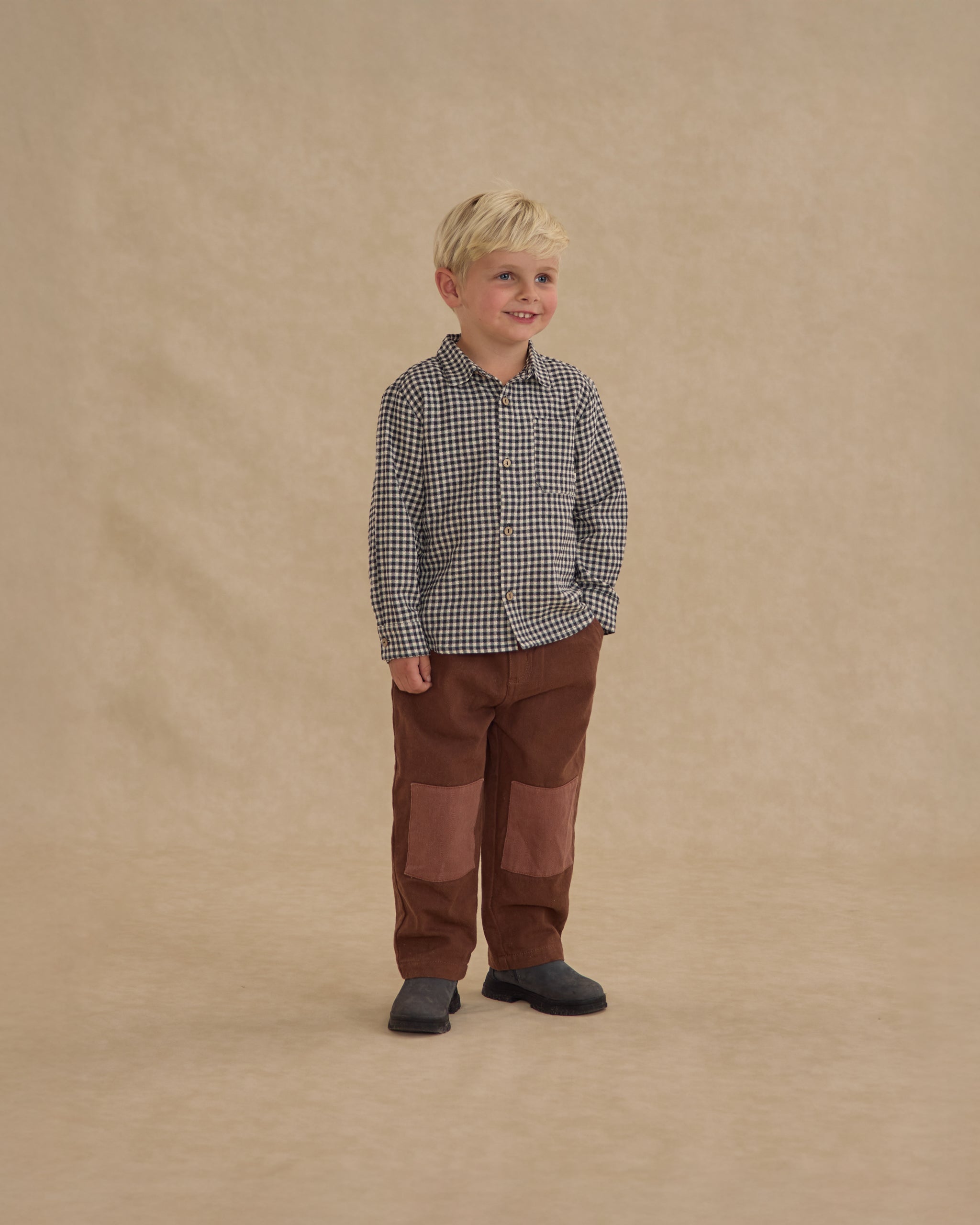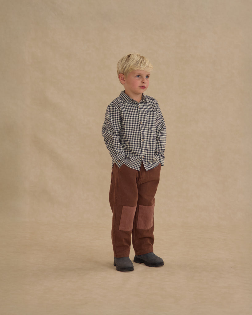 Timeless and versatile, the Navy Check Collared Long Sleeve Shirt by Rylee + Cru is a classic staple made for every little wardrobe. Designed in a crisp navy and white check pattern, this button down features a traditional collar, a tailored chest pocket, and long sleeves for a polished yet comfortable fit. Whether dressed up with chinos for special occasions or worn casually with joggers and sneakers, this shirt brings effortless style to any day of the week.