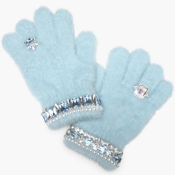 Keep your little one's hands warm and stylish this winter with our Disney Frozen Elsa Jeweled Gloves! In a soft, icy blue, these cozy gloves feature a chenille-like texture that feels plush against the skin. Designed to be super stretchy, they provide a snug fit, making them perfect for frosty adventures.