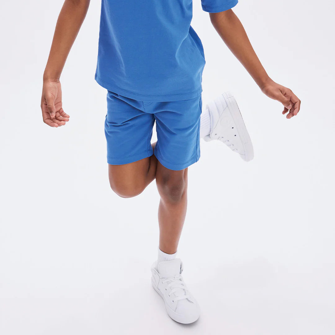The Royal Blue Terry Shorts by Miles The Label are a soft, versatile staple for everyday adventures. Made from a comfortable blend of organically grown cotton and recycled polyester terry cloth, they offer a breathable, eco-friendly fit with a touch of stretch. Designed with an elasticated waistband, adjustable drawstring, and handy side pockets, these shorts make dressing easy and keep little essentials close at hand. Perfect for playdates, park trips, or casual weekend wear, they pair effortlessly with t-shirts and sweatshirts from the same range for a laid back, everyday look.