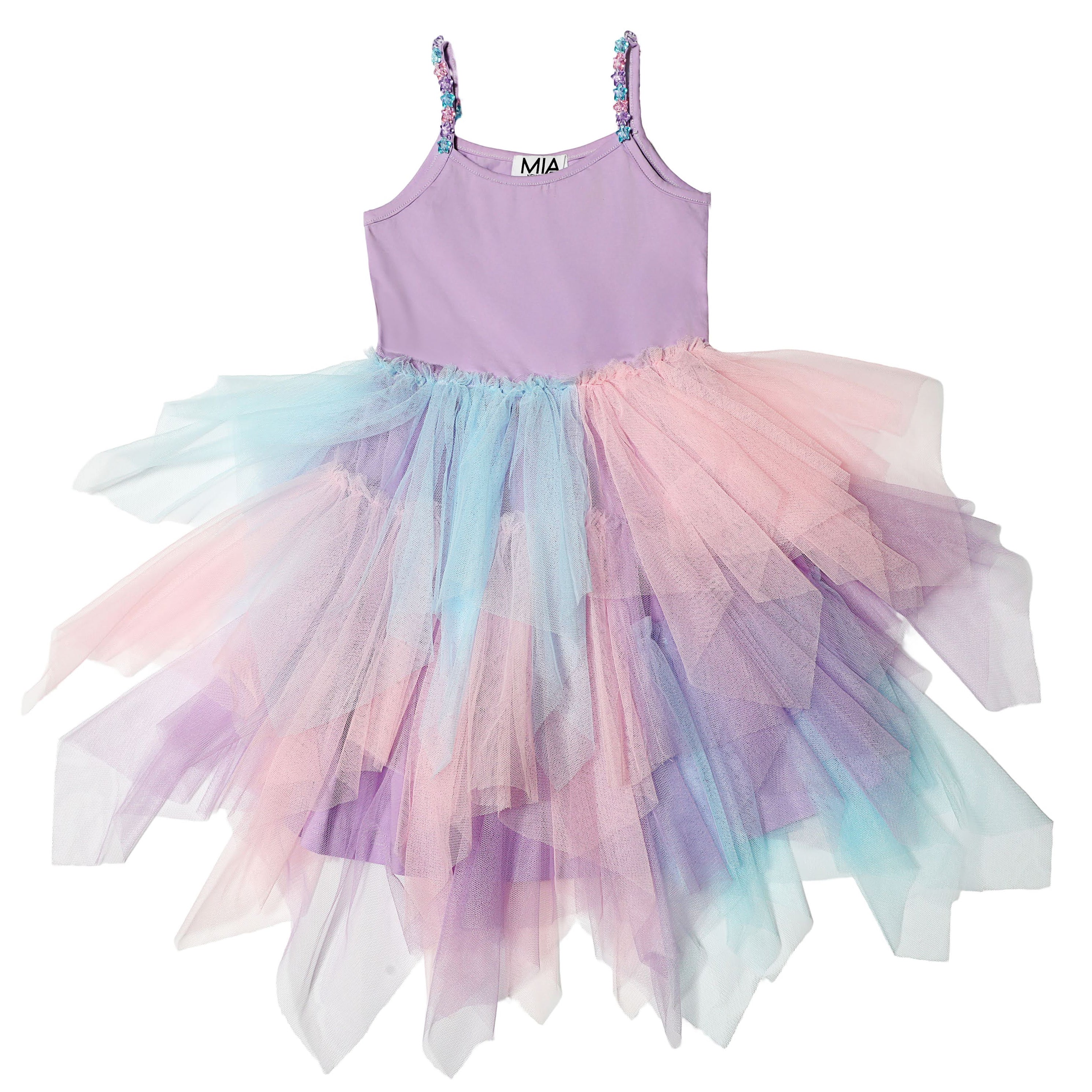 The Purple Beaded Strap Tutu Dress by MIA is a magical, twirl ready dress perfect for little dreamers. Featuring a pretty purple base and delicate thin straps with star beads in blue, purple, and pink, it shines from every angle. The skirt boasts three full tiers of tutu in coordinating blue, purple, and pink hues, creating a fun, layered look that moves beautifully with every spin. Perfect for parties or special occasions, this dress combines sparkle, comfort, and playful style in one enchanting outfit.