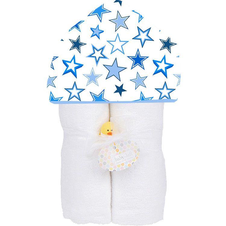 Wrap your little one in cozy comfort and celestial style with our Starry Sky Deluxe Hooded Towel by Baby JaR. Featuring a dreamy starry print and a luxuriously soft plush minky hood, this towel is perfect for bath time, pool time, or snuggling up anytime. Made from super absorbent 100% cotton terry, it’s generously sized at 52" x 30" (plus hood) to grow with your little one from infancy through childhood. Proudly made in the USA, this towel combines everyday practicality with out-of-this-world charm.