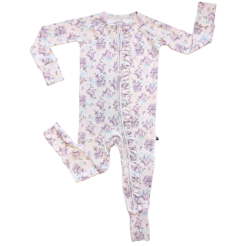 The Etta Floral Pointelle Convertible Romper by Lev Baby brings fresh charm to one of our most beloved styles. With this thoughtfully designed convertible piece, youāll never have to choose between a romper or a footie again. Our signature foot flaps āpopā on and off with ease, keeping your little one cozy when covered and free to walk or waddle whenever theyāre ready. Made from 95% viscose from bamboo and 5% spandex, the fabric is buttery soft, breathable, and perfectly stretchy, gentle on sensitive skin and designed for all day comfort. Featuring a convenient double zipper for easy diaper changes and a fit-to-grow silhouette that runs slightly larger to allow room for the convertible foot feature, this romper is made to last through every growth spurt. Style it with their favorite shoes for an effortlessly adorable daytime look, or keep it cozy for sweet dreams at night. Made from one of the most sustainable materials on Earth and fully machine washable for lifeās little messes, this romper is as practical as it is precious.