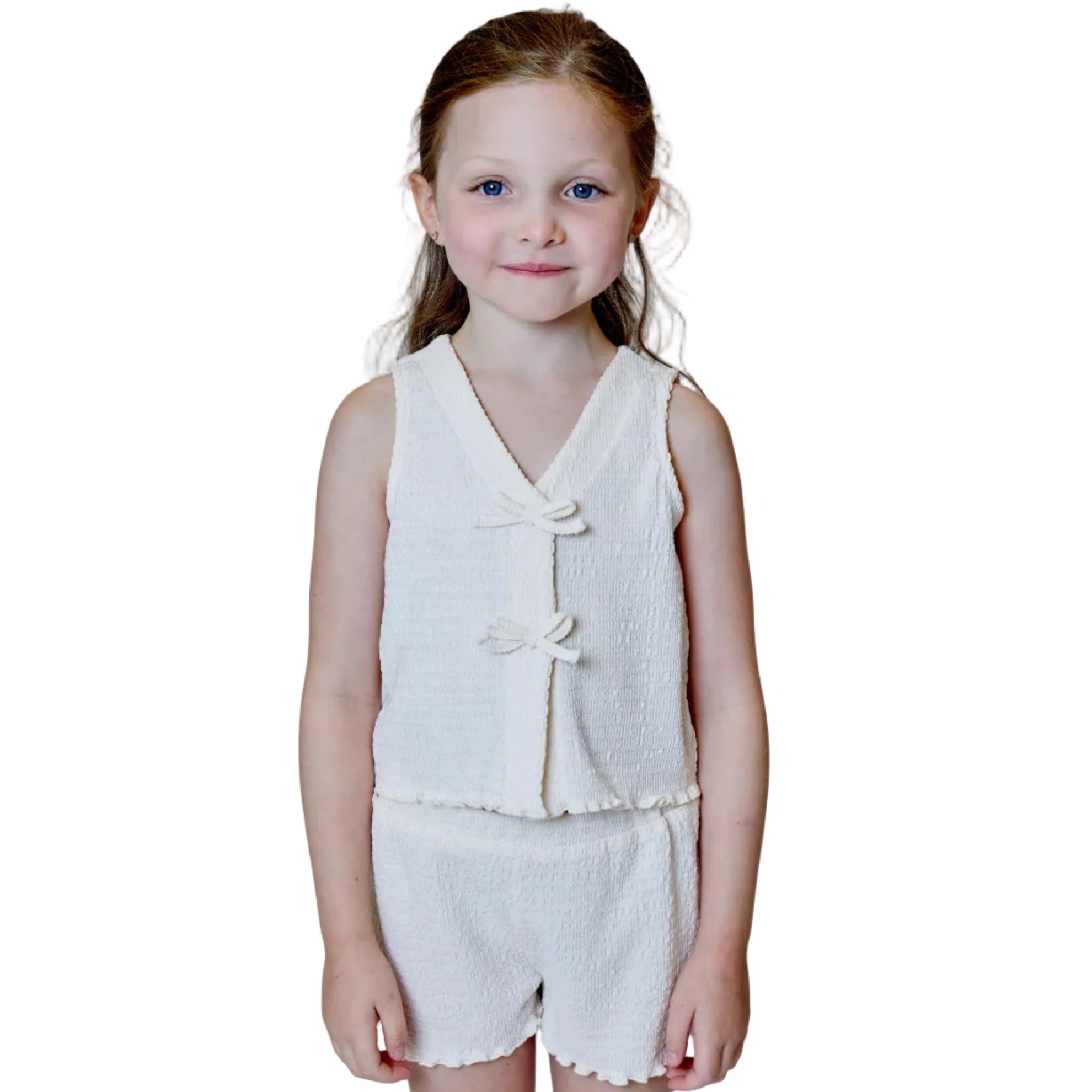 Complete the look with the matching Off White Knit Bow Tank by Design History for an effortlessly adorable and coordinated outfit.
