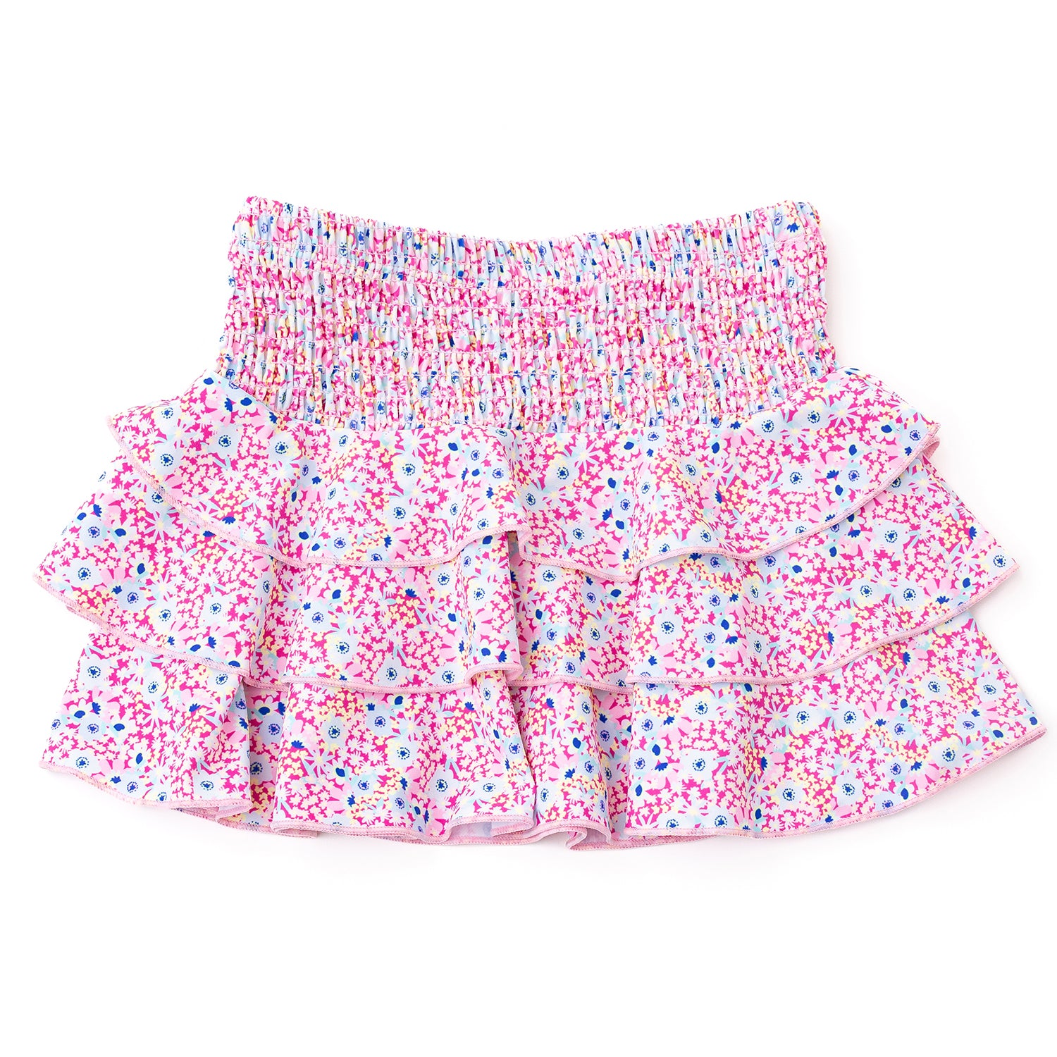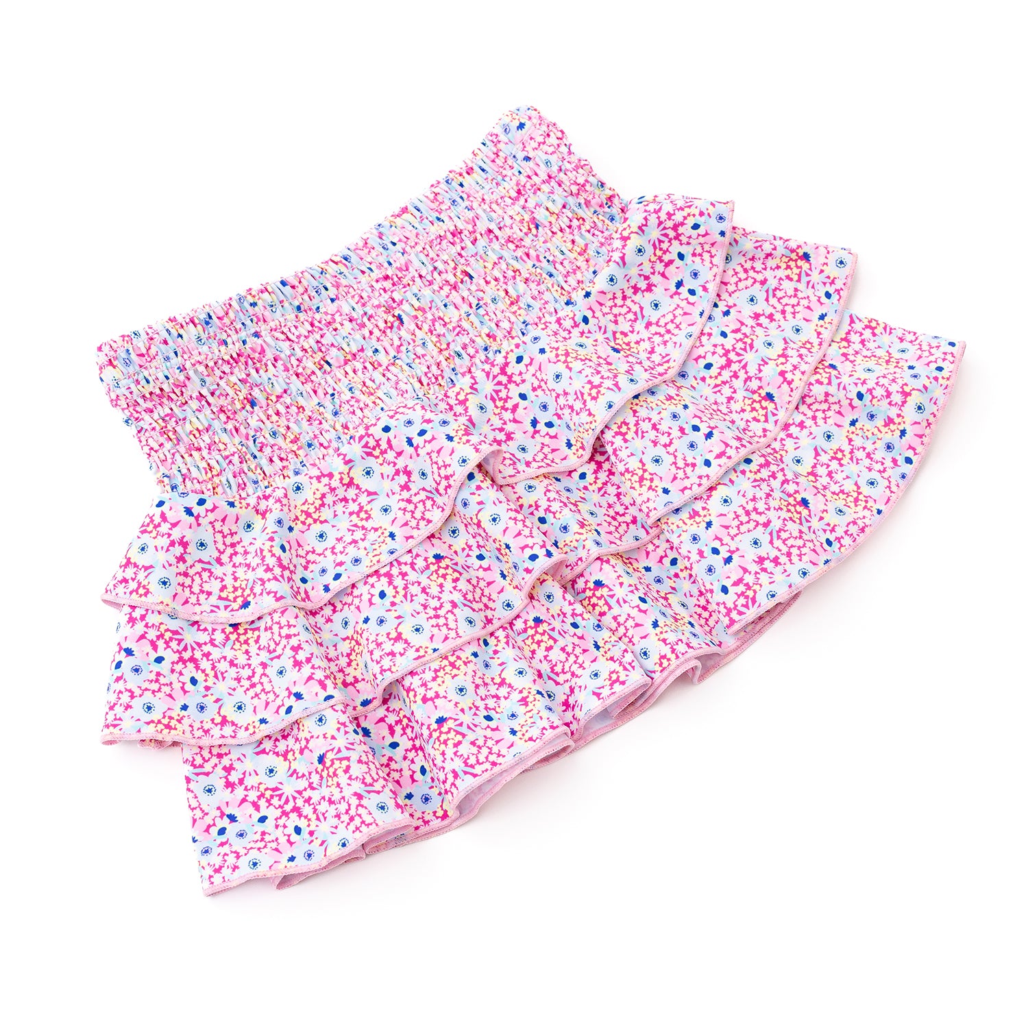 Add a pop of playful charm to her summer wardrobe with the Electric Ditsy Skirt by Shade Critters in pink floral. Designed for movement and comfort, this active skirt features three tiers of ruffle detailing that twirl and bounce with every step, making it perfect for playdates, practice, or casual outings. The smocked waistband ensures a secure, stretchy fit that grows with her, while the soft, flexible fabric allows her to run, jump, and spin freely. The perfect balance of comfort and stretch, and thoughtfully designed in the USA, the Electric Ditsy Skirt brings fun, function, and style together for every little adventurer.