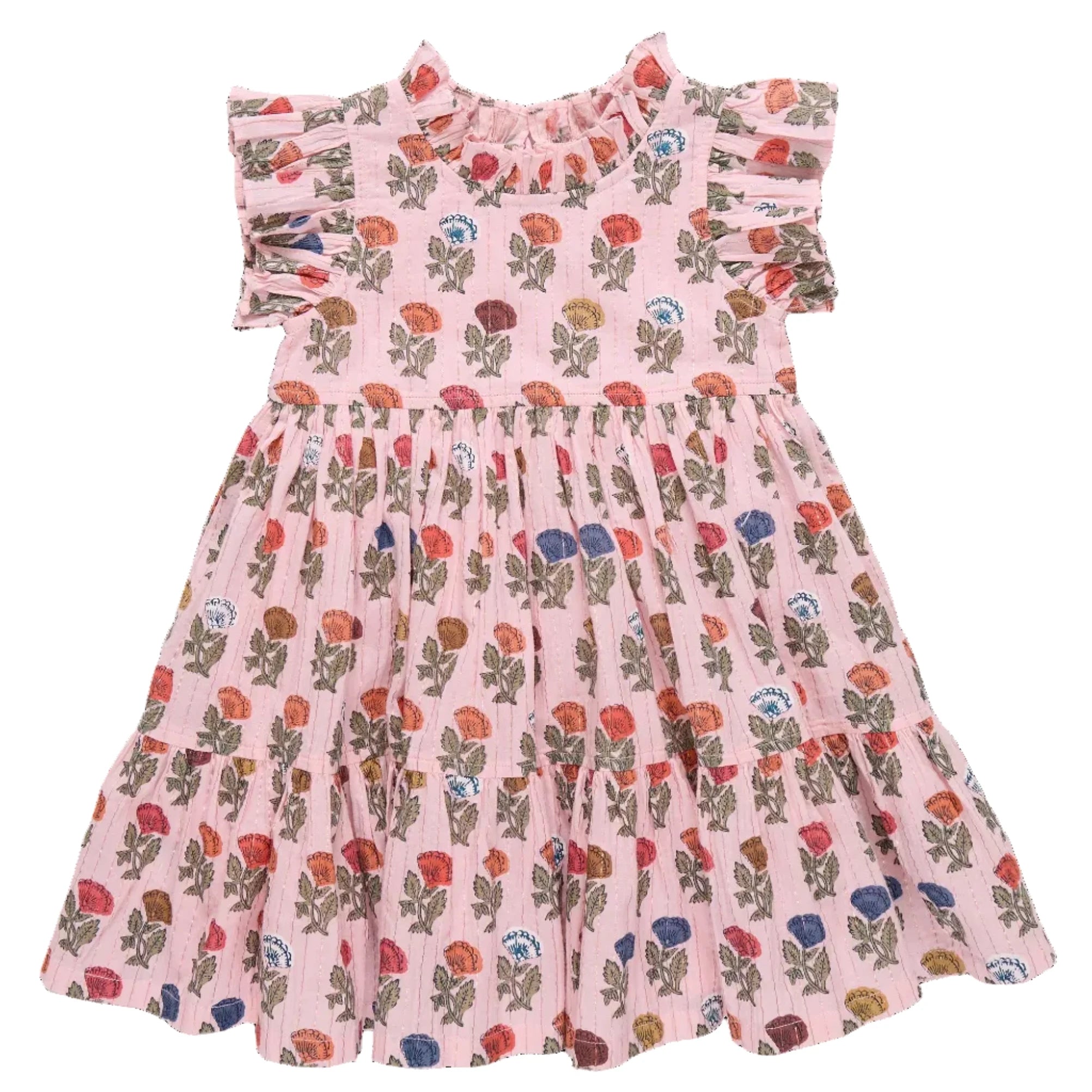 The Multi Flower Drop Jennifer Dress by Pink Chicken is a twirl ready favorite made for everyday adventures and special spring celebrations alike. Bursting with a cheerful floral print, this charming dress features soft ruffles at the sleeves and neckline for a sweet touch, while a tiered skirt adds beautiful movement with every spin. A subtle shimmer woven throughout lends just the right hint of sparkle, making it feel extra special without sacrificing comfort. Finished with an invisible zipper for easy dressing and a polished fit.