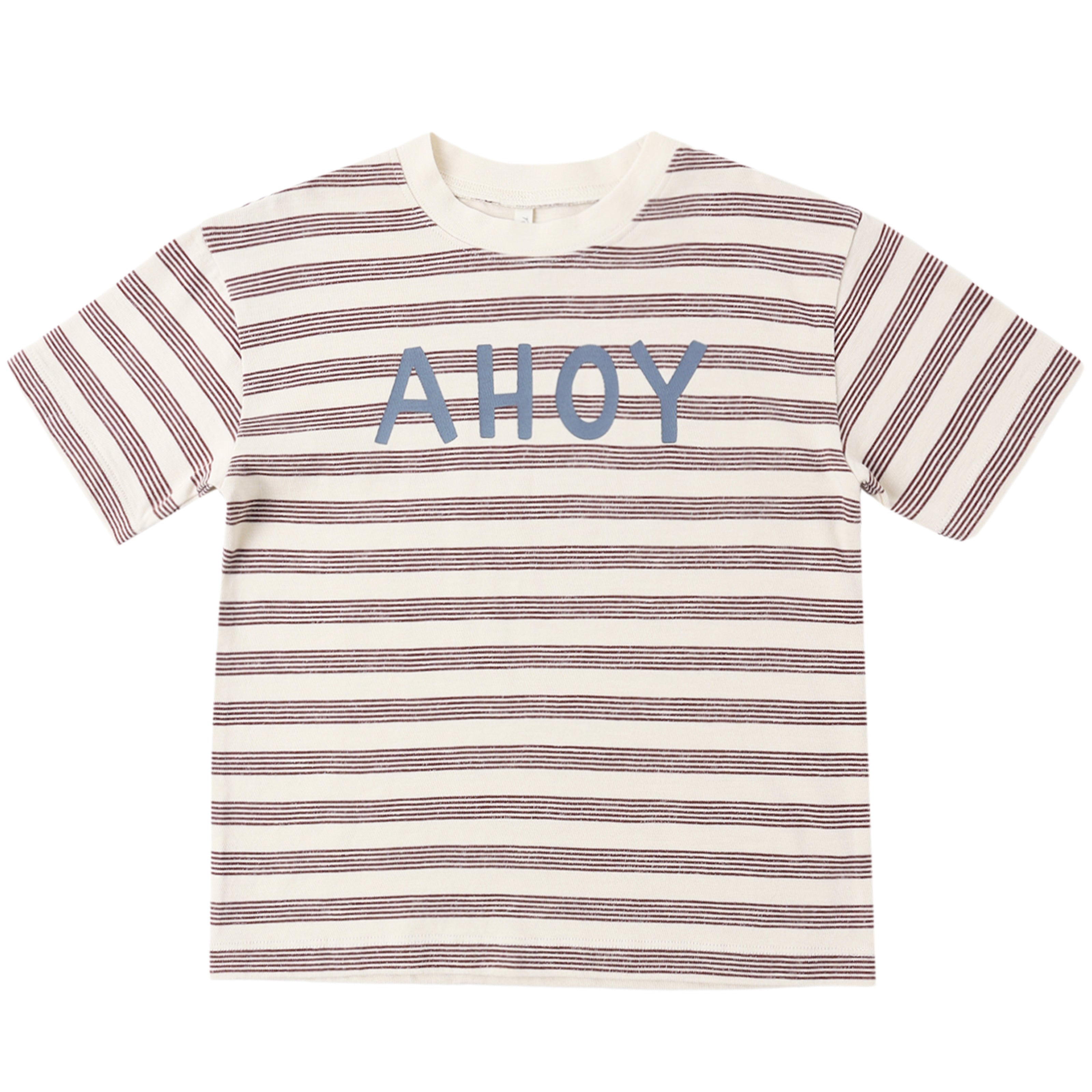 Introducing the Ahoy Relaxed Tee by Rylee + Cru, the perfect blend of comfort, charm, and everyday style. This short sleeved tee features soft brown and white stripes for a timeless coastal vibe, while the bold blue āAhoyā graphic across the front adds a playful pop of color. Designed with a relaxed fit and crafted from high quality, breathable fabric, itās made for easy layering, all day comfort, and effortless style. Whether your little one is setting sail on new adventures or just lounging at home, this tee brings a touch of nautical fun to any outfit. Casual, cute, and endlessly versatile, the Ahoy Relaxed Tee is a warm weather essential.