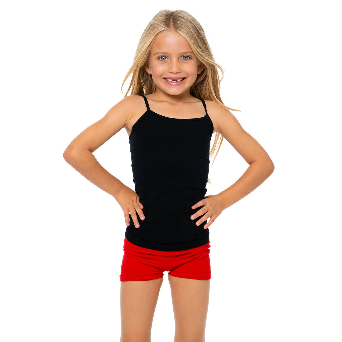 Elevate her everyday wardrobe with our Girls Black Camisole, a classic essential that effortlessly blends comfort and style! This camisole features delicate straps for a timeless look that pairs seamlessly with any outfit. The versatile solid black color makes it a perfect layering piece or standalone star. Whether for school, play, or special occasions, this camisole is a must-have for every girl's collection.