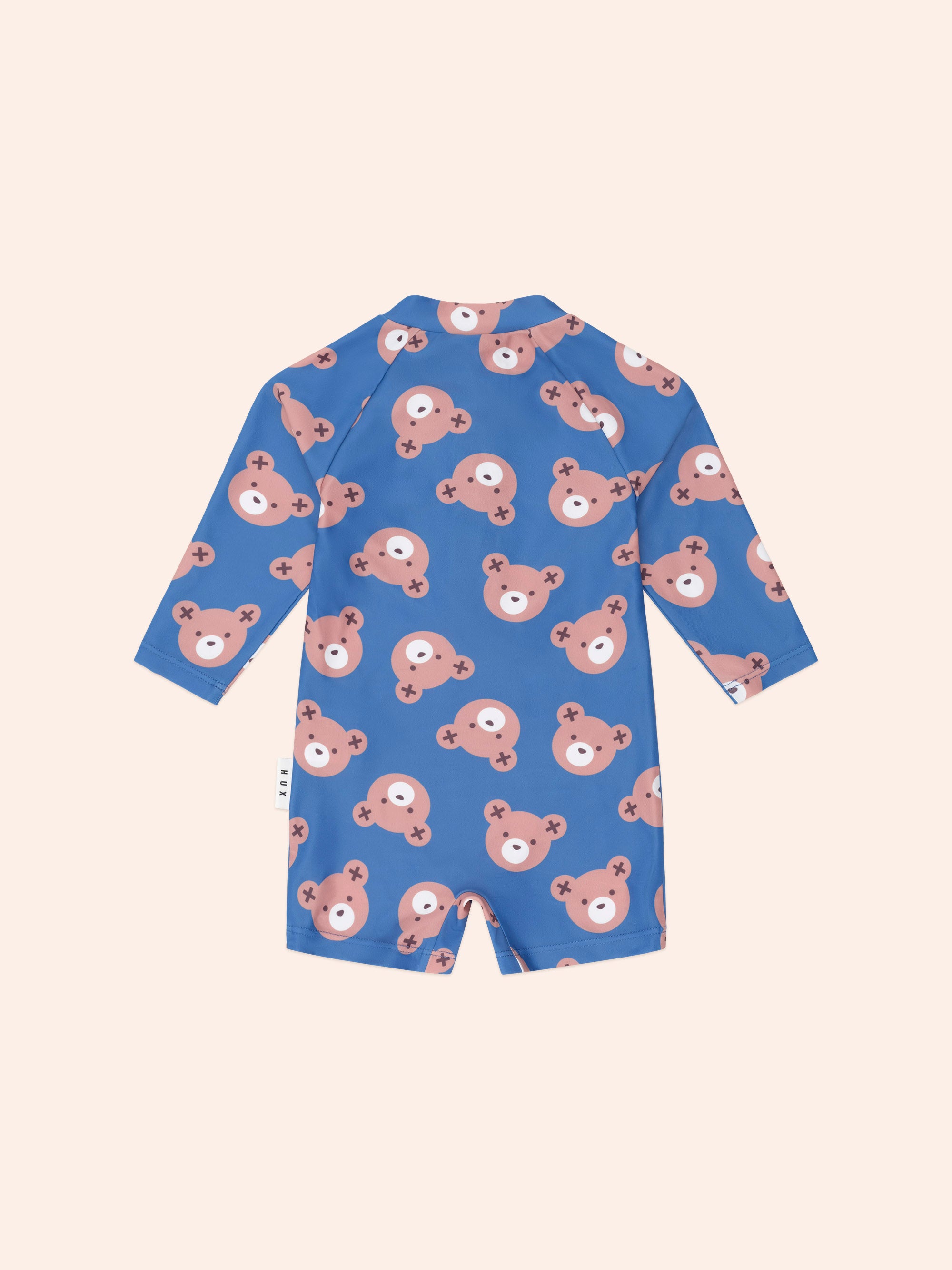 Keep your little one safe in the sun with the Classic Hux Rashie by Huxbaby. This adorable one piece rashsuit features long sleeves and a charming all over Huxbear print, combining style with serious sun protection. Made from super soft, GRS certified recycled polyester, it offers UPF 50+ fabric for maximum UV protection. Designed for comfort and ease, it includes a front zipper with a protective zipper guard to prevent irritation. Sustainably produced and dyed with safe, AZO free dyes, the Classic Hux Rashie is the perfect eco-friendly choice for sunny days by the water.