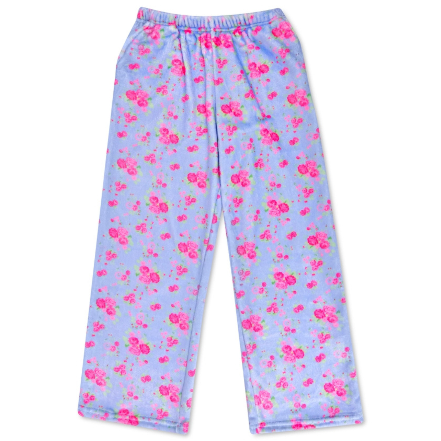 Cozy meets cute in the Ditsy Floral Plush Pants by Iscream, featuring an ultra soft plush fabric with a calming purple base and a sweet pink floral pattern throughout. Designed for everyday comfort, these pants have an easy pull on elastic waist with a fabric covered waistband, plus front pockets for a practical touch. Made from 100% polyester, they’re machine washable and perfect for lounging, sleeping, or relaxing at home, and they’re available in children’s sizes for a comfy fit kids will love.