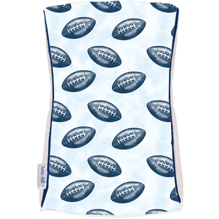 Score big on style and functionality with the Football Burp Cloth by Baby Jar. Made from super soft, plush minky fabric, this burp cloth is gentle on baby’s skin while standing up to repeated use wash after wash. Generously sized for full coverage, it features a blue base color decorated with playful football themed prints, adding a sporty touch to everyday feeding. Durable, adorable, and built to last, this burp cloth makes mealtime easier, and more fun, than ever.