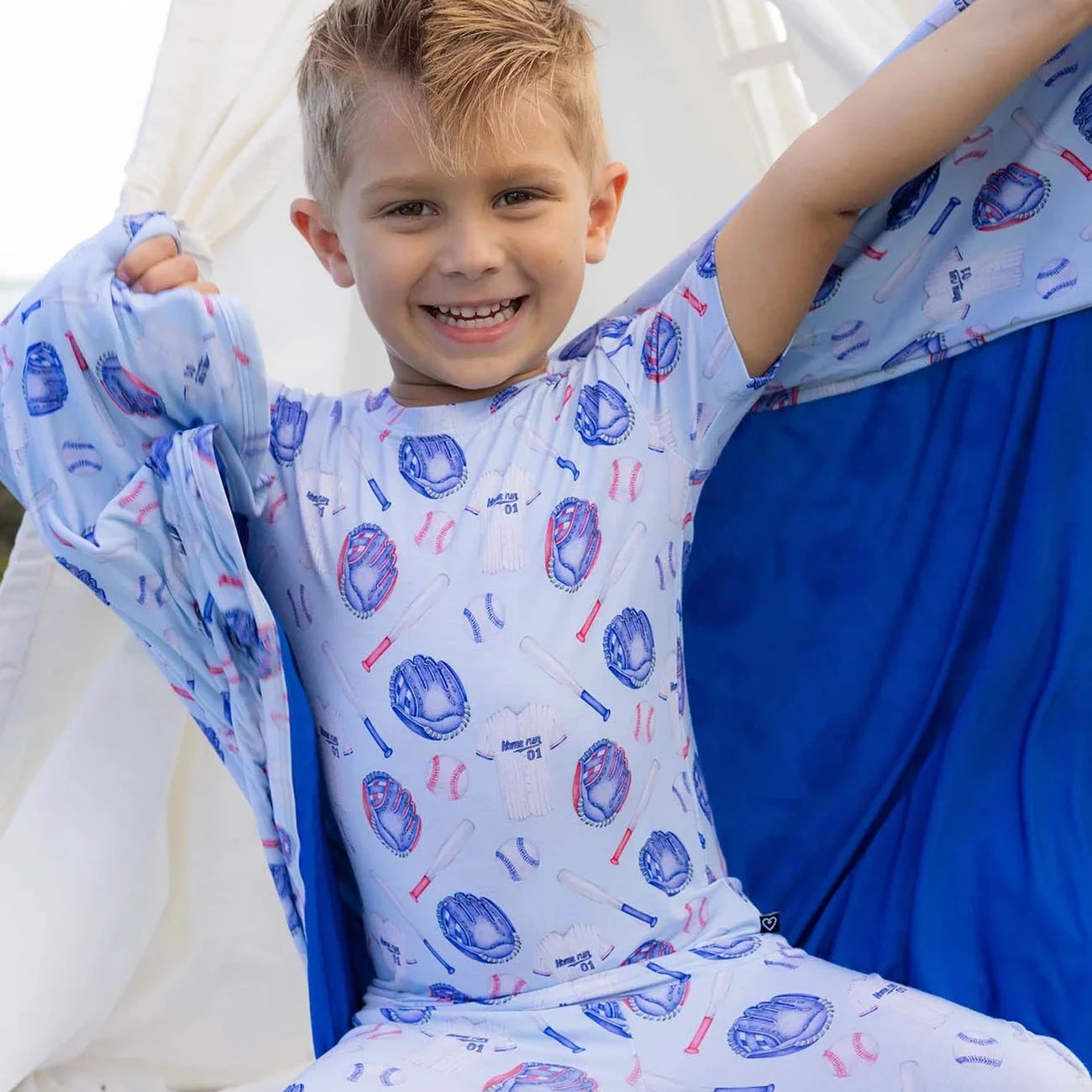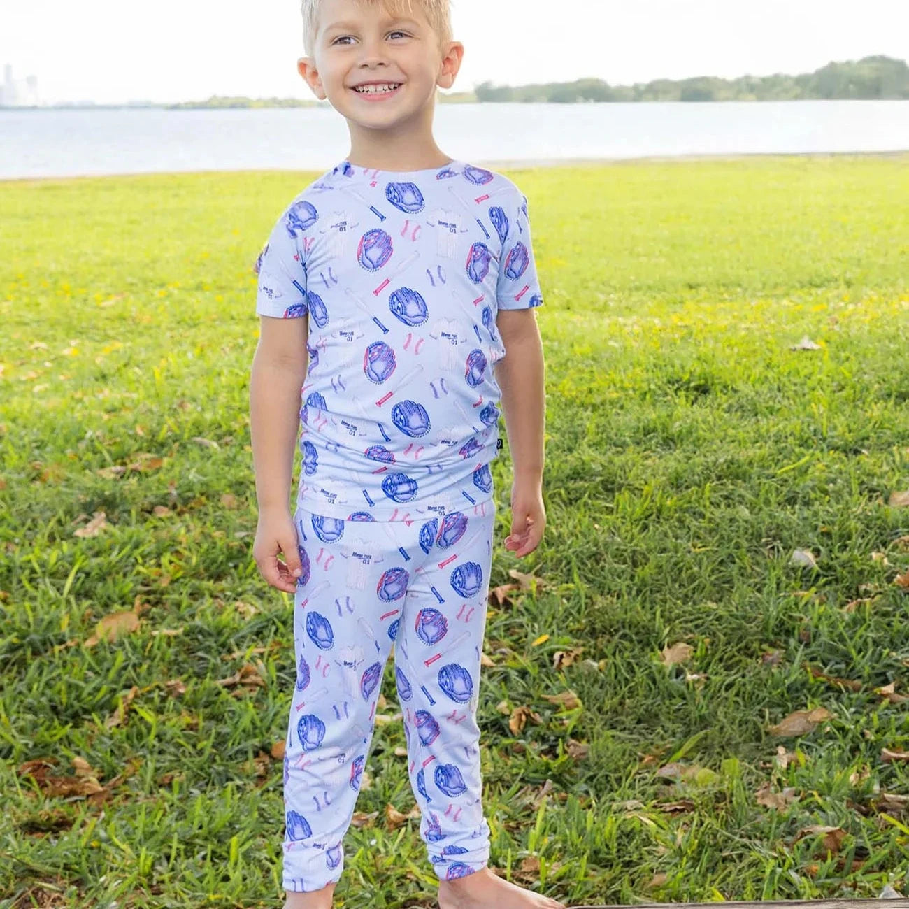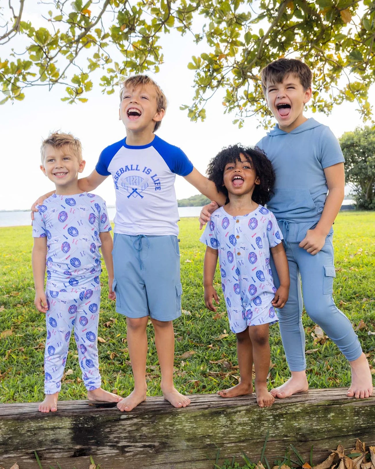 The Home Run SS Lounge Set by Lev Baby is part of their best selling collection, designed to be snuggly soft, effortlessly comfy, and an instant favorite at bedtime and beyond. This two piece short sleeve pajama set is made from their signature viscose from bamboo fabric, offering a buttery soft feel with just the right amount of stretch so your toddler can move, play, and sleep in total comfort. Naturally breathable and gentle on sensitive skin, the lightweight bamboo blend helps keep little ones cozy in any season. With its flexible fit and dreamy softness, the Home Run SS Lounge Set is made for sweet dreams, slow mornings, and all the home run moments in between.