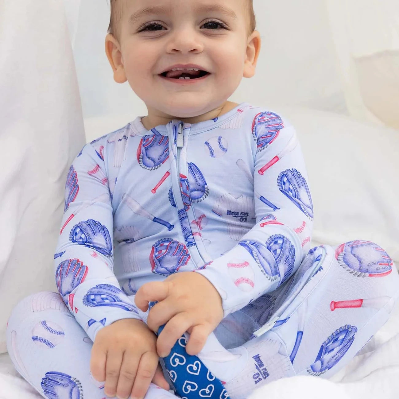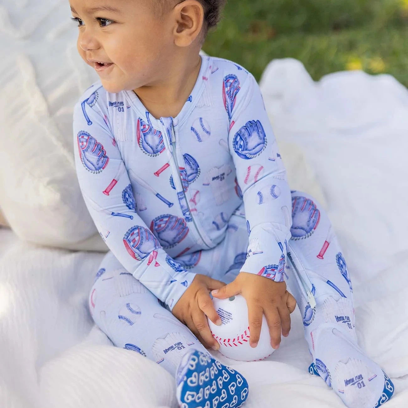 The Home Run Zippered Footie by Lev Baby is thoughtfully dreamed up with functionality and style in mind, keeping your little one snug and cozy day or night in any season. Made from 95% viscose from bamboo and 5% spandex, this buttery soft, breathable fabric naturally wicks moisture and regulates temperature, making it perfect for sensitive skin while offering a stretchy, fit-to-grow design that lasts longer through every growth spurt. A convenient double zipper makes late night diaper changes quick and stress free, while footie grips add both safety and sweetness for early movers. Built in fold over mittens in littles help prevent accidental scratches, and because life with a baby can get messy, itās fully machine washable. Made from bamboo footie is as gentle on the earth as it is on your baby, soft, practical, and made for everyday moments.