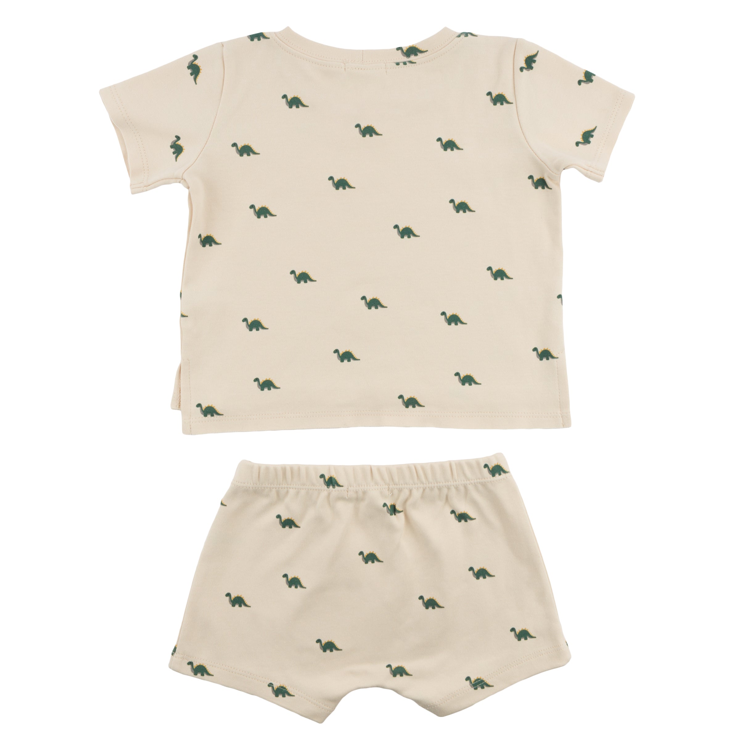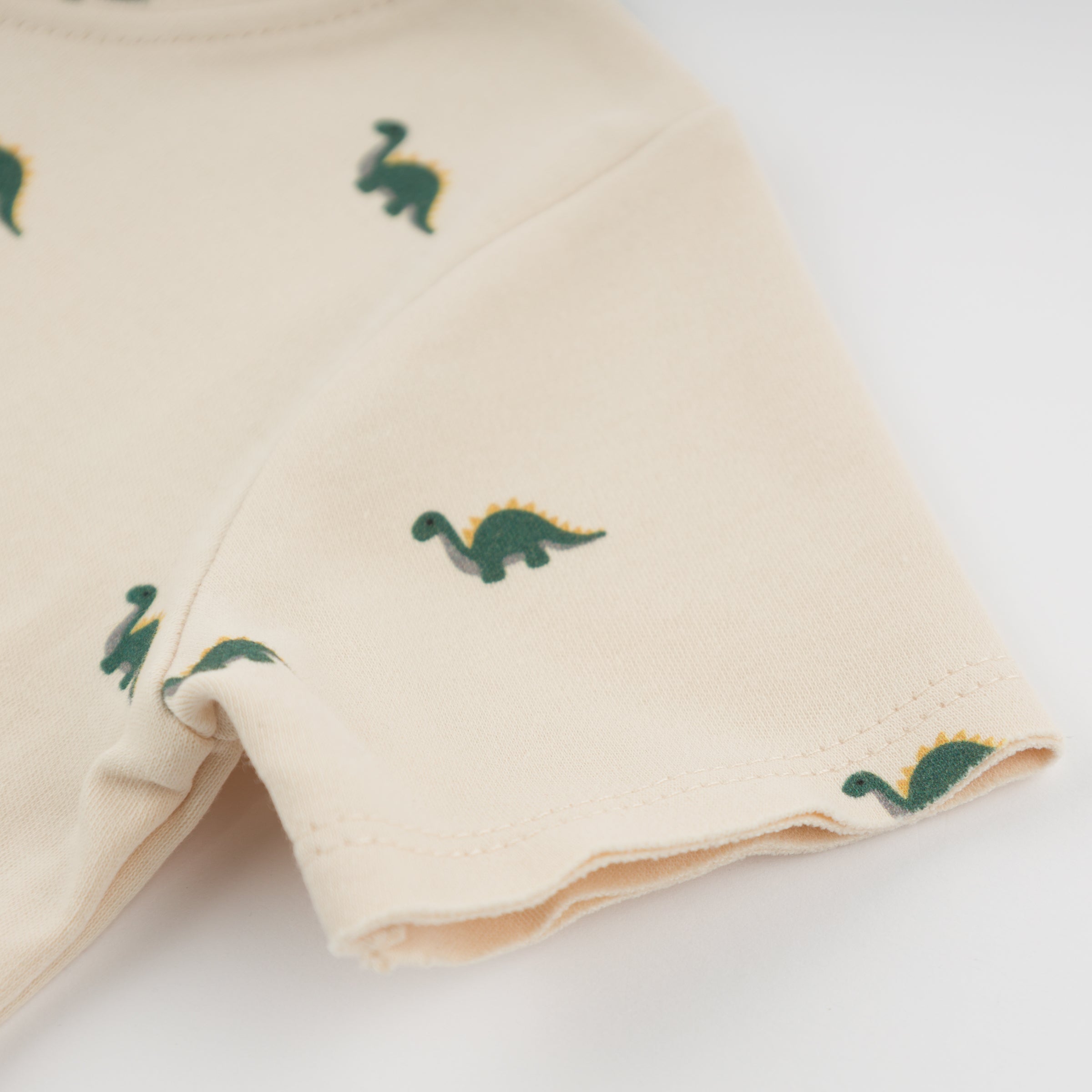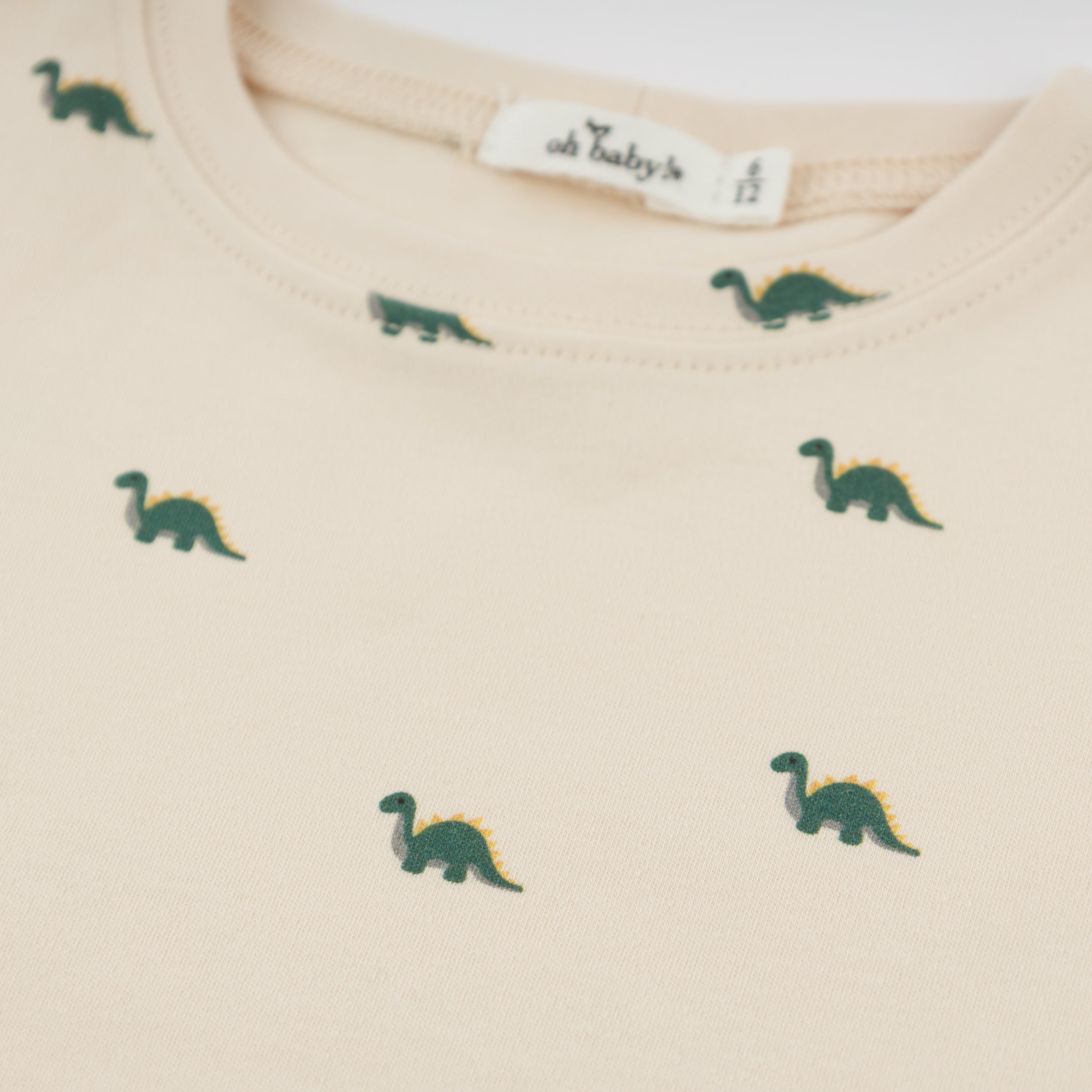 The Mini Dinos SS Short Set by Oh Baby! is a playful and comfortable outfit perfect for little adventurers. Featuring a cream base color with an all-over tiny dinosaur pattern, this set includes a matching short-sleeve t-shirt and shorts. The soft, breathable fabric keeps kids comfy during playtime, while the elastic waistband on the shorts ensures a secure, flexible fit. Fun, whimsical, and easy to wear, the Mini Dinos Short Set makes everyday adventures extra cute and carefree.