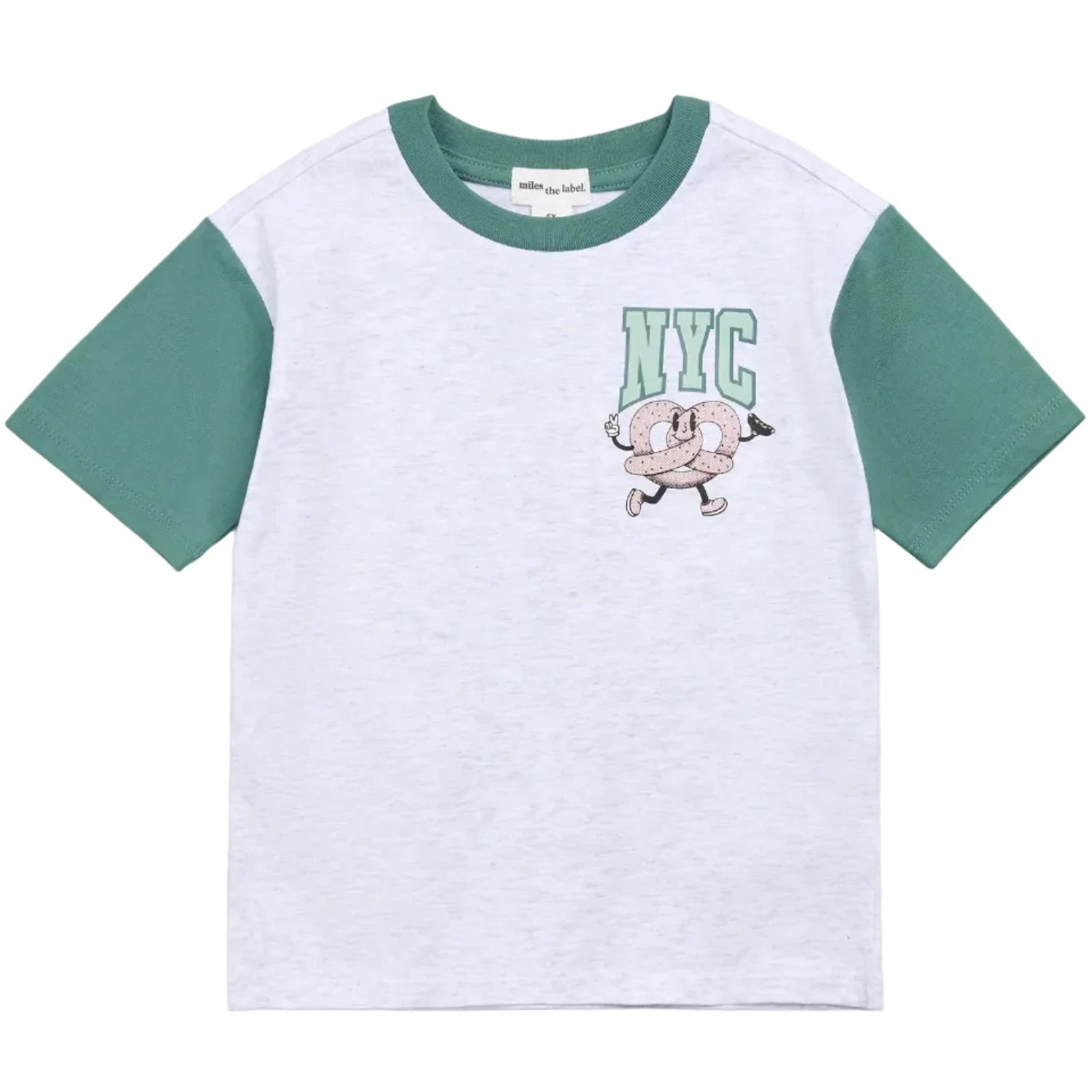 The NYC Pretzel Raglan T-Shirt by Miles The Label is a sporty, playful staple for little trendsetters. Made from soft, organically grown cotton jersey, it features a relaxed fit, short sleeves, and a rounded ribbed neckline for all-day comfort. The block-color design keeps it simple yet stylish, while pairing perfectly with the matching shorts for a coordinated, fun-filled outfit that’s ready for playdates, park adventures, or everyday wear.