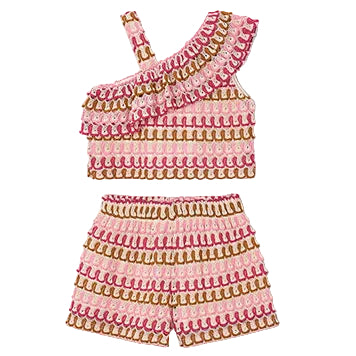 One Shoulder Knit Short Set - Pink / 2 is backordered and will ship as soon as it is back in stock.