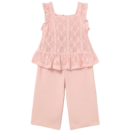 The Pink Crochet Knit Set by Mayoral is a sweet and comfortable ensemble for little ones. In a soft pink, the set features a cozy tank top with a button back closure and matching pant bottoms with an elasticized waistband and faux drawstring for a flexible, secure fit. Delicate crochet detailing adds a charming, handcrafted touch, making this coordinated set perfect for playdates, casual outings, or relaxed days at home.