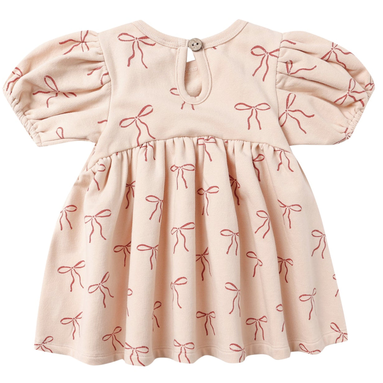 Sweet and timeless, the Darla Dress by Quincy Mae features a classic babydoll silhouette with gentle balloon sleeves and a coconut button keyhole at the back for easy dressing. Made from soft organic cotton, it offers the perfect blend of comfort and charm for everyday play or special occasions. With delicate āred bowsā on a warm beige base, this darling piece is sure to be a favorite in your little oneās wardrobe.