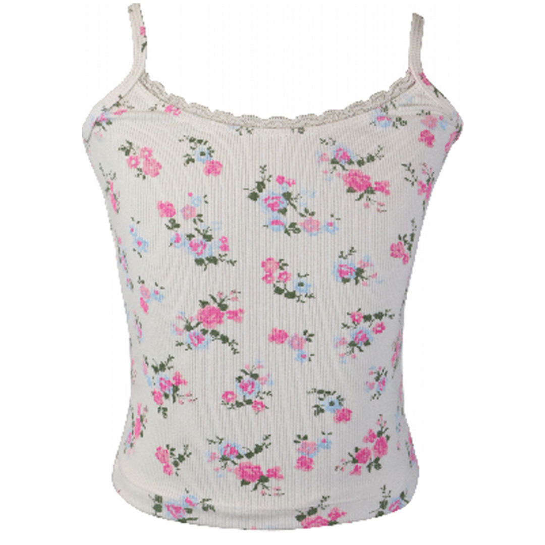 Sweet and timeless, the Rib Eyelet Camisole by Flowers By Zoe is a charming warm weather essential she’ll love. Designed with a crisp white base and a delicate floral print throughout, this classic camisole features soft ribbed fabric, dainty eyelet details, and thin adjustable straps for the perfect fit. Lightweight, breathable, and easy to layer or wear on its own, it’s ideal for sunny days, playtime, and everything in between: cute, comfortable, and effortlessly stylish.
