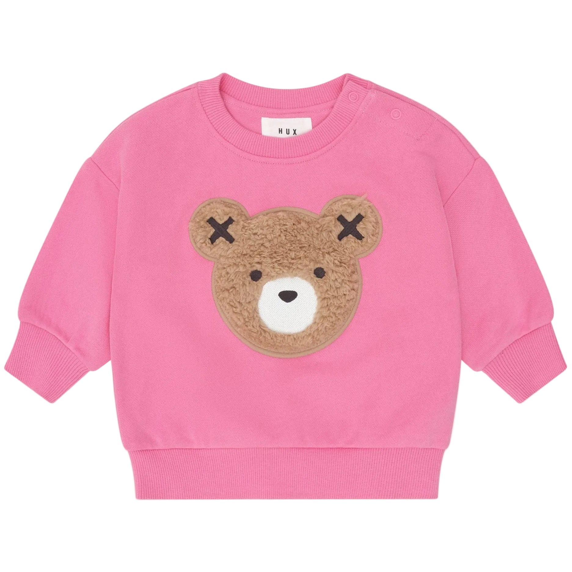 Dress your little one in cozy comfort with our Strawberry Huxbear Sweatshirt in pink. Made from premium organic cotton terry, this sweatshirt features a super soft, plush feel that's gentle on sensitive skin. The standout furry bear appliqué at the front adds a whimsical touch, while snug wrist cuffs keep the warmth in. Designed with stainless steel snaps at the shoulder for easy dressing. Made from certified organic cotton and dyed with safe, azo-free colors, this sustainably produced sweatshirt combines comfort, style, and eco-friendly practices.